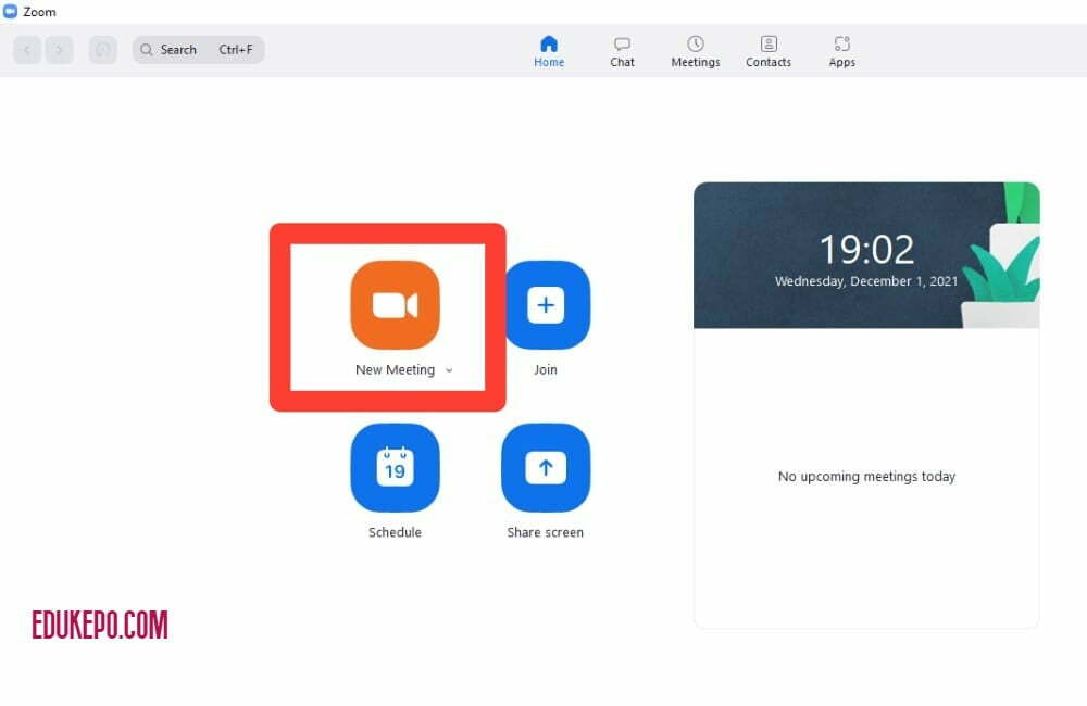 3. Klik menu New Meeting untuk segera memulai rapat, atau