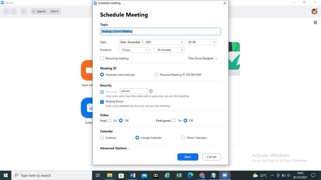 4. Klik menu “Schedule” untuk menjadwalkan pertemuan di lain waktu